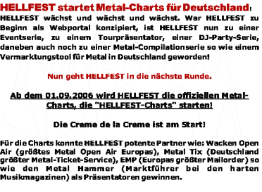 Ab dem 01.09.2006 wird HELLFEST die offiziellen MetalCharts, nämlich die "HELLFEST Charts" starten.