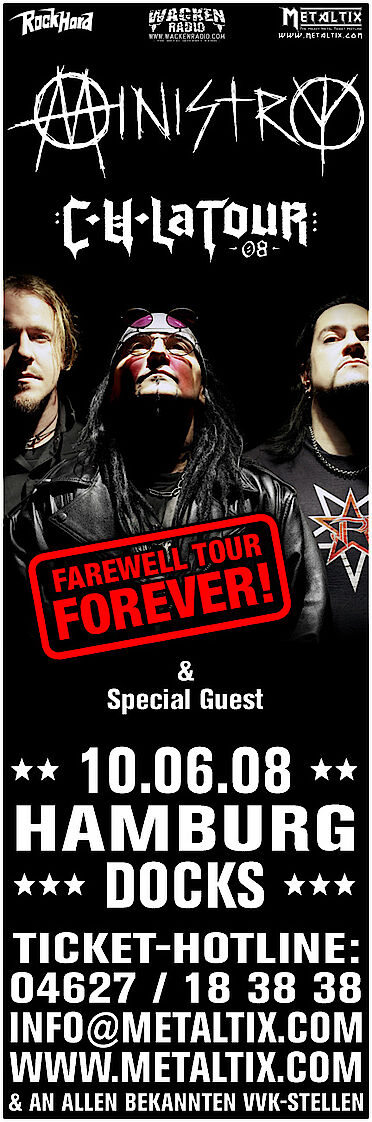 Am 10.06.2008 werden sich die Mannen von Ministry um Al Jourgensen noch einmal die Ehre geben und im Rahmen ihrer Abschiedstour ein Konzert in Hamburg…