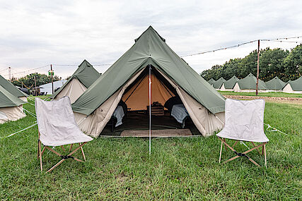 - Sechs verschiedene Unterkunftstypen: für zwei bis sechs Personen. Ihr könnt auch euer eigenes Zelt mitbringen und eine Strom-Parzelle nutzen.