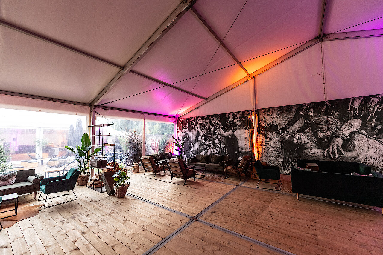 Alles klar. Wir haben ein Chapel-Zelt für euch: ein echtes Raumwunder auf ca. 3,20 x 3,20 Metern: mit zwei Betten, Decken, Kissen, Tagesdecken und Sitzgelegenheiten. Die perfekte Festivalgröße für bis zu zwei Personen. Beten müsst ihr übrigens nicht im Chapel. Aber wenn ihr wollt, könnt ihr bei einer Höhe von ca. 2,80 Metern locker darinstehen.