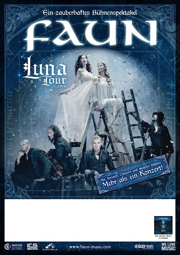 „Luna“, das neue Album der Pagan-Folk-Band Faun, ist eine Reise, die die mythische Bedeutung des Mondes einfängt und für die Zuhörer erlebbar macht. Um dieses Klangerlebnis live umzusetzen, haben Faun sich ein spezielle Konzept überlegt: Die Auftritte im Frühjahr 2015 sind nicht einfach nur Konzerte, sondern vielmehr einzigartige Spektakel.