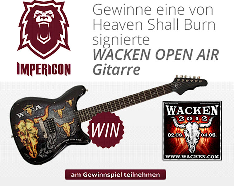 In Zusammenarbeit mit dem Wacken Open Air verlost Impericon eine der seltenen E-Gitarren mit Wacken Open Air Branding. Das zu verlosende Exemplar wurde darüber hinaus von Heaven Shall Burn signiert und ist daher für alle W:O:A und Heaven Shall Burn Fans ein doppelter Leckerbissen und ein echtes Unikat.