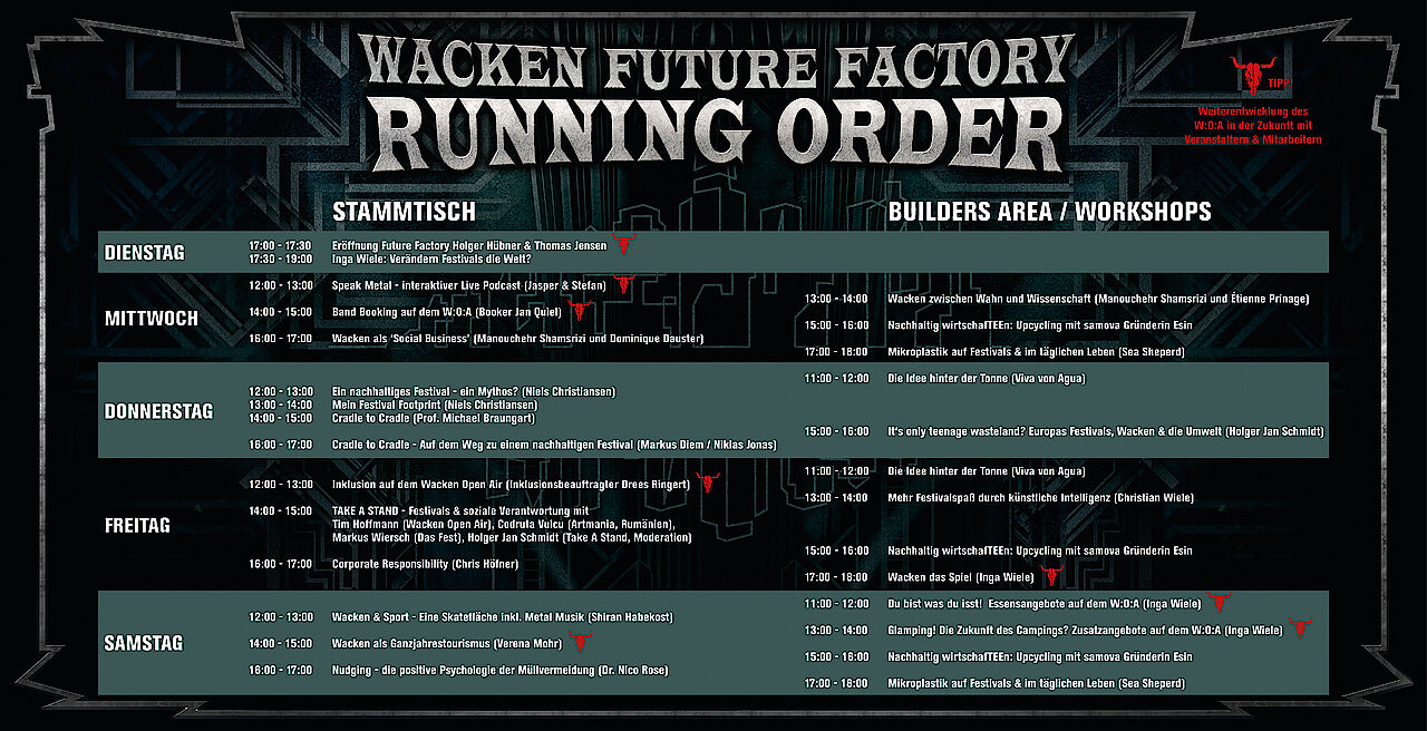 Folgende Bereiche sind für die Wacken Future Factory geplant: