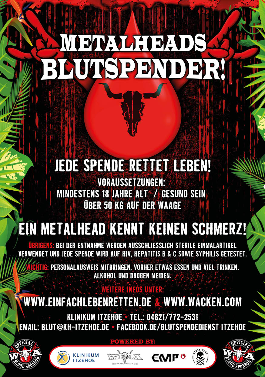 Am Freitag und Samstag, den 19. und 20. Mai 2017 wird im Klinikum Itzehoe unter dem Motto "Metalheads, wir brauchen Euer Blut wieder fleißig Blut gespendet.