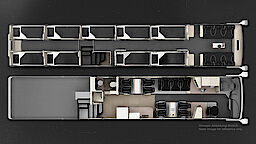 Bitte beachtet: Die Schlafplätze sind schmale Kojen und nicht geeignet für Menschen mit Platzangst oder für Menschen mit einem Körpermaß über 2 Metern. Es können keine Schlafalternativen zu den Kojen im Bus bereitgestellt werden. - Entspannen:Euer Rückzugsort fernab vom Festivaltrubel mit gemütlicher Lounge und Entertainmentbereich plus Teeküche und Minibar für eure Crew. Täglich wird die Minibar mit Getränken aufgefüllt. Die Teeküche und das Entertainment im Doppeldecker sind für euch nutzbar.