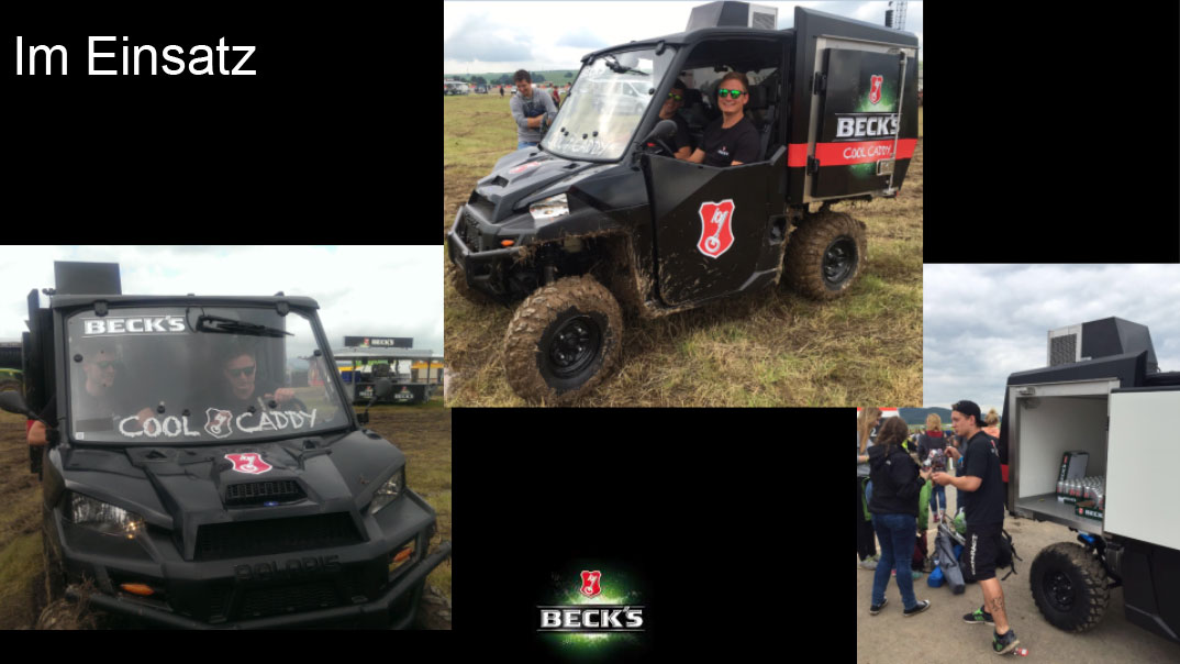 This year the so called Beck's Cool Caddy will patrol the camp grounds and supply you with cold beer. This mobile beer delivery vehicle will always be there when the last beer is empty. So keep an eye open for the rolling Beck's transporter!